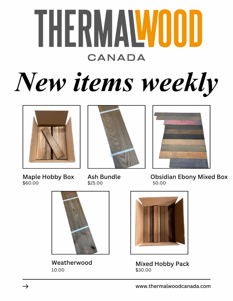 Our goal is to build a complete catalogue that highlights all of the incredible hobby packs available here at ThermalWood Canada — each one made from sustainably sourced, thermally modified wood crafted right here in Bathurst, New Brunswick.